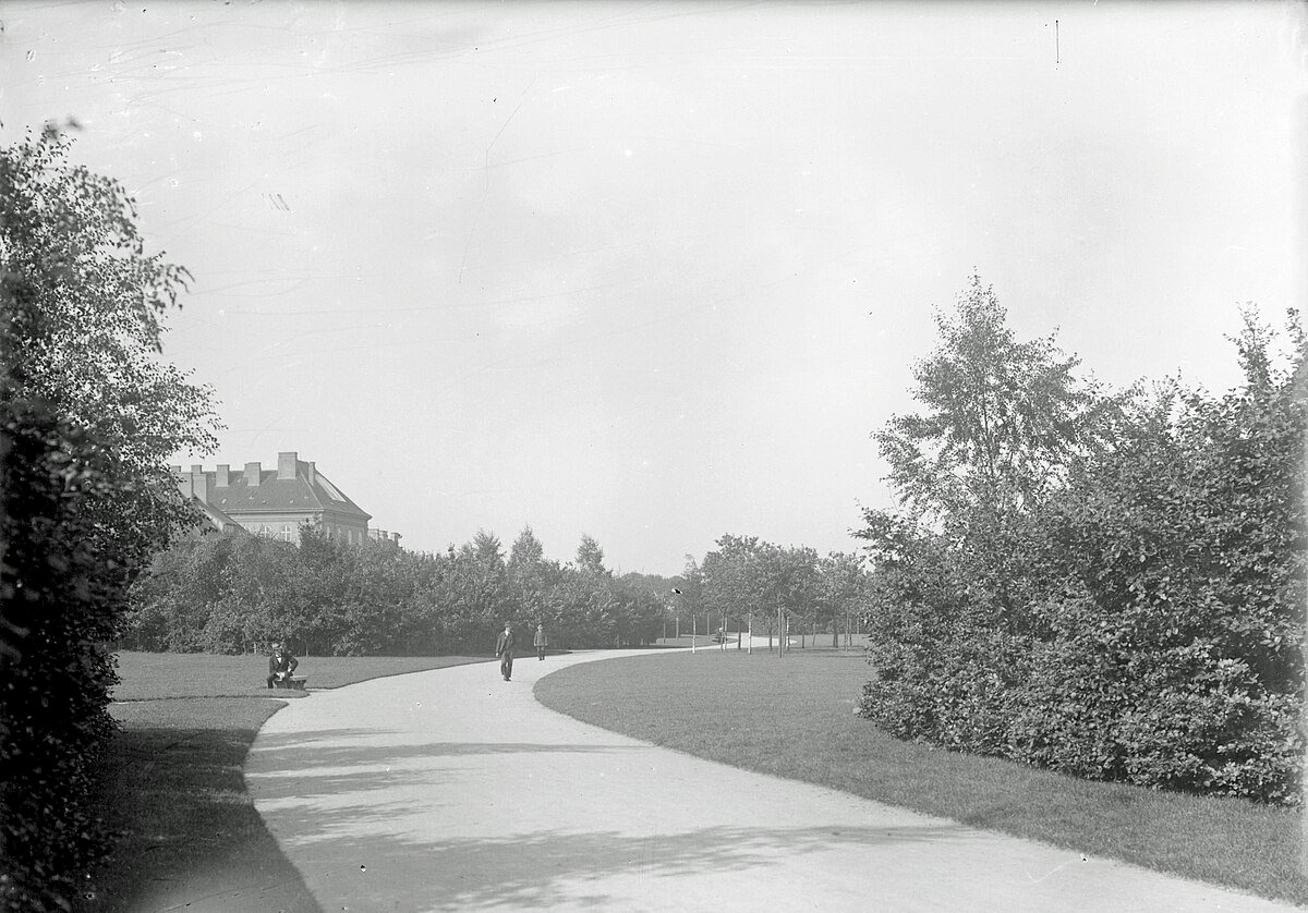 Vesterbro park with beautiful rose garden and dog-friendly areas.