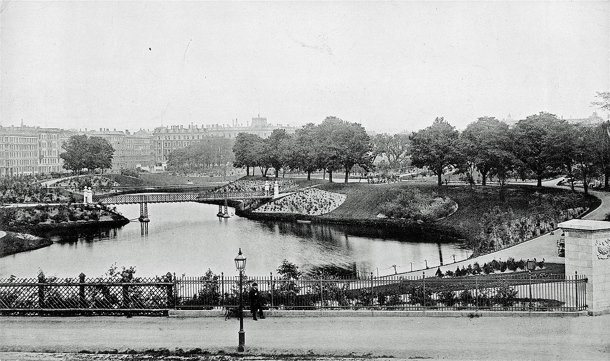 Central park near NΓΈrreport with lake and romantic atmosphere.
