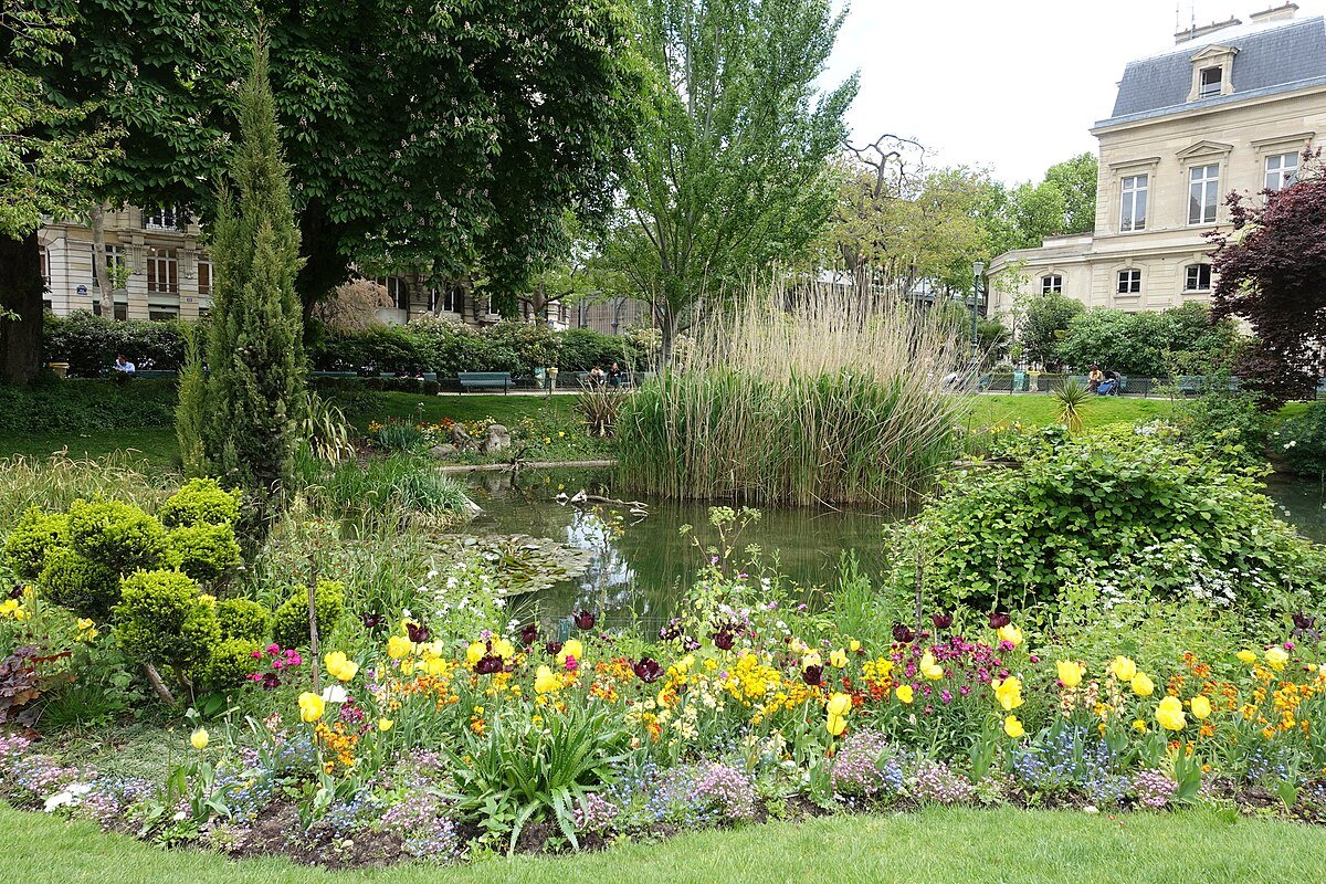 Historic garden in the Marais with English-style landscaping and dog-friendly paths.