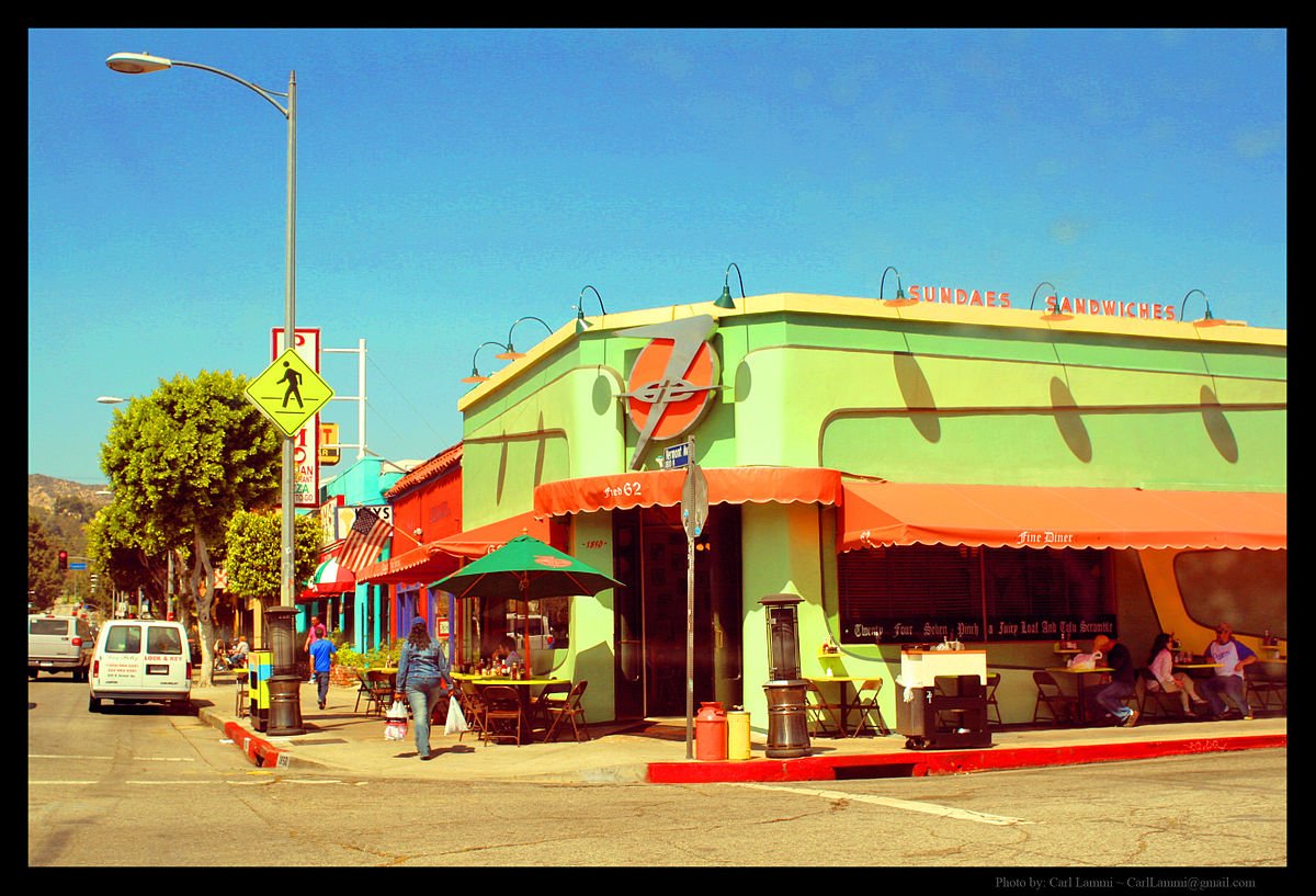 Retro diner in Los Feliz open 24/7. Dogs welcome on the patio for late-night bites.